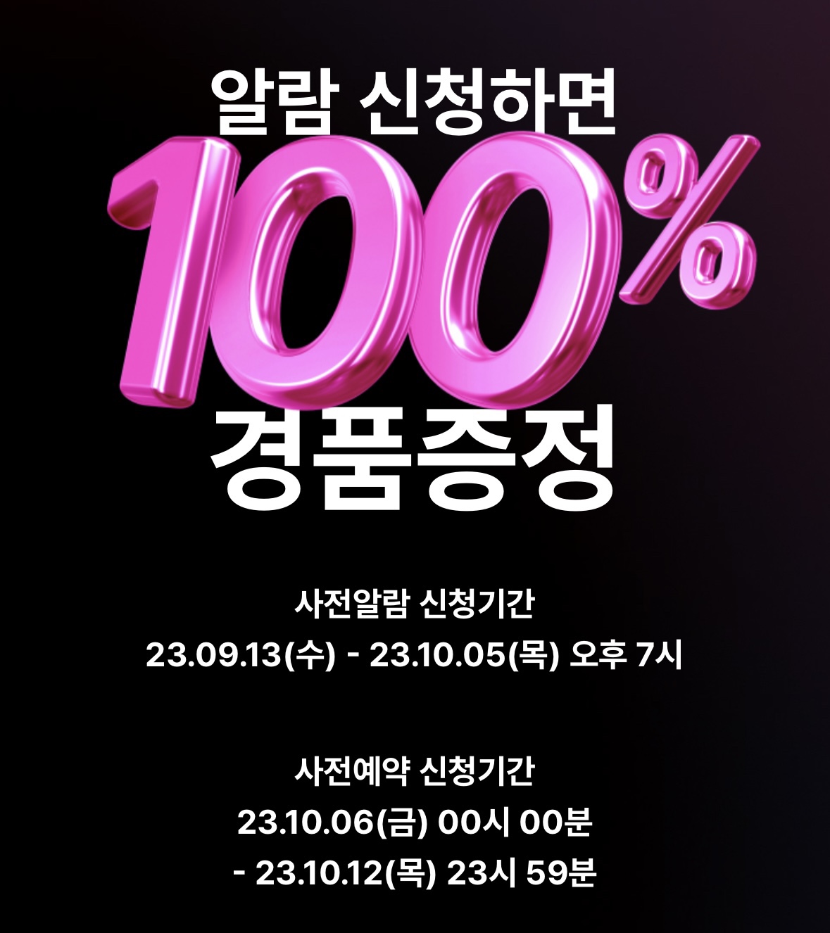 LG유플러스에서는 아이폰15 사전알람 신청시 100% 경품증정 이벤트를 진행하고 있습니다.